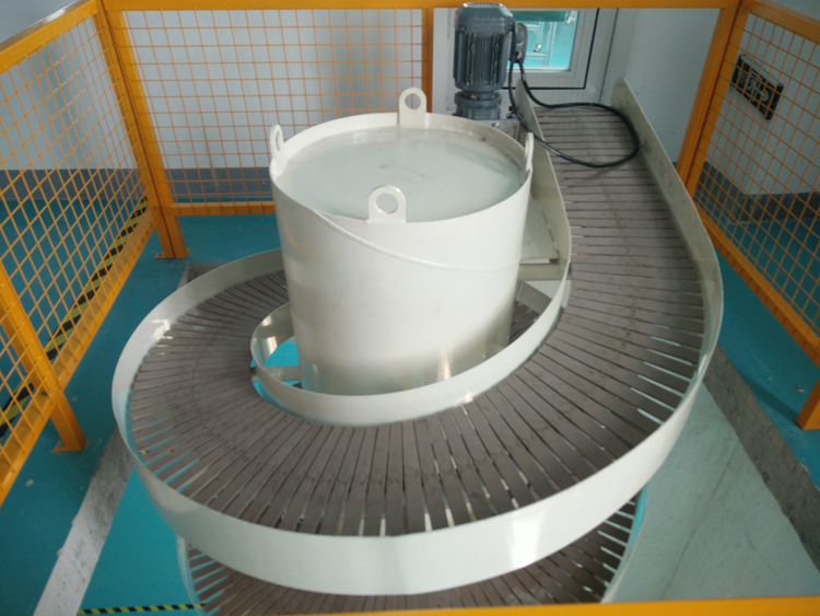 螺旋輸送機根據(jù)布置不同可分為水平螺旋輸送機和垂直螺旋輸送機。水平螺旋輸送機主要由螺旋軸、料槽、中間軸承、葉片、末端軸承、首端軸承、中間裝載口、中間卸料口、末端卸料口、驅動裝置等部分組成,這些部件通過焊接、法蘭式或穿軸式中間連軸形成一體,除了料口和驅動裝置等,其余部件全部安裝在封閉的料槽內;驅動裝置作用于螺旋軸使其旋轉,經(jīng)進料口進入到料槽內的物料在焊接在螺旋軸上的葉片的推動作用下前移并在出料口進行卸載。垂直螺旋輸送機結構與水平螺旋輸送機近似,其工作原理是物料在螺旋離心力作用下向葉片邊緣移動進而壓在輸送管壁上,這樣增加了物料與管壁的摩擦力,該摩擦力迫使物料旋轉速度低于葉片旋轉速度,在葉片的推動作用下從而實現(xiàn)物料上升,最后經(jīng)卸料口卸載??偟膩碚f,無論何種螺旋輸送機最終是依靠葉片的推動實現(xiàn)物料運輸?shù)摹?/p>